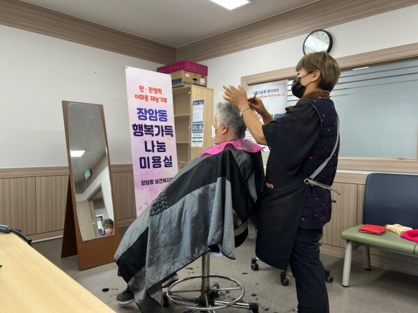 올해 6월부터 매월 진행되고 있는 ‘행복가득 나눔미용실’ 행사는 장암동 어르신을 위해 이·미용 재능기부를 하고 싶다는 정미애 원장님의 제안으로 시작됐다.
