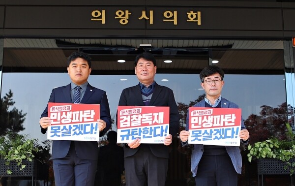 이날 서창수 대표의원과 김태흥 의원, 한채훈 의원은 윤석열 정부의 경제정책과 외교안보, 검찰의 제1야당 당사 압수수색 등의 사안을 거론하며 강하게 비판했다.