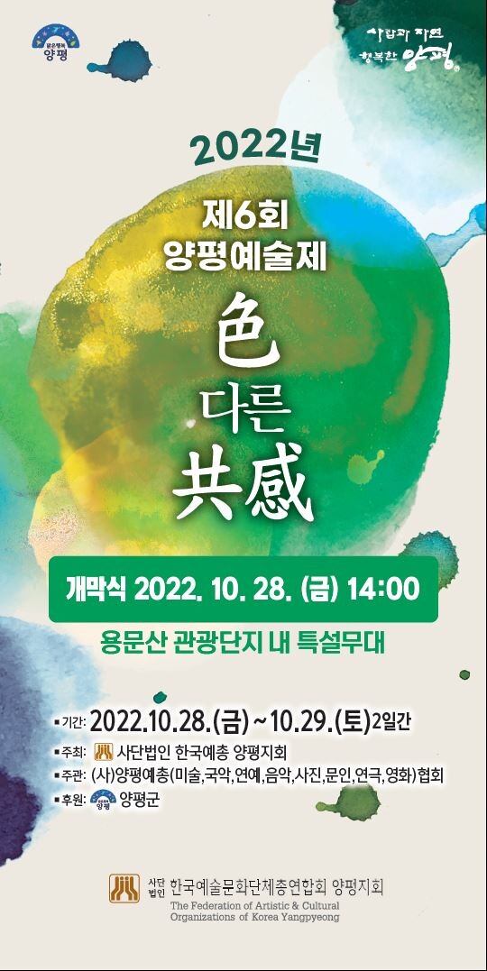 김성용 양평예총 회장은 “코로나로 그간 위축됐던 예술 활동이 다시금 꿈을 키우고 도전할 수 있는 계기가 되기를 바란다”며 “양평예술을 대표하는 차별화된 종합예술제로 구축할 수 있도록 노력하겠다”고 말했다.
