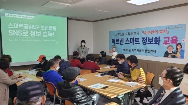 한철희 백석1동장은 “기차표 예매, 온라인 쇼핑, 택시 잡기 등 스마트폰으로 손쉽게 해결할 수 있는 일들이 많기에 어르신들께서 이번 교육을 통해 스마트 기기를 잘 활용할 수 있길 바란다”며 “다양한 의견을 청취해 어르신들이 필요한 사업을 지속적으로 실시하겠다”고 말했다.