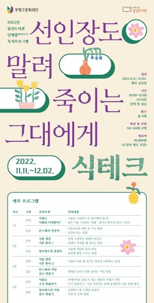 프로그램은 1강 식테크 어떻게 시작할까, 몬스테라 분갈이 2강 식물 생장 기본 원리1, 필로덴드론 분갈이 3강 식물 생장 기본 원리2, 몬스테라 커팅, 삽수 만들기 4강 식물로 수익 창출하기, 필로덴드론 커팅 및 삽수 만들기 등 총 4회차로 구성됐다.