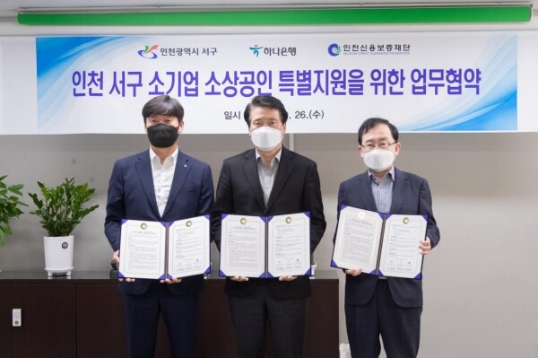 서구는 지난 26일 하나은행과 인천신용보증재단 관계자가 모인 가운데 소기업·소상공인 금융지원을 위한 ‘소상공인 특별지원 협약보증 업무 협약식’을 체결했다.