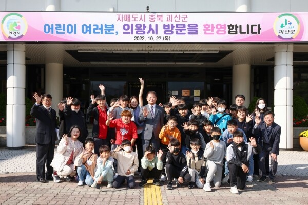 이번 방문은 지난 10월 12일 의왕시 청소년들이 괴산세계유기농산업엑스포에 방문한 뒤 15일 만에 답방으로 초등학생 및 인솔자를 포함한 31명이 의왕시를 방문해 자매도시 간의 우애를 다지는 시간을 가졌다.