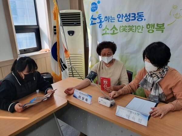 안성3동은 기관사회단체 회의 시 혈압을 정기적으로 체크·관리함으로써 심뇌혈관 질환 등 주요 질병을 예방하고 지역주민의 건강한 삶을 유지하고자 혈압 및 혈당에 대한 기초상식을 안내하는 시간을 가졌다.