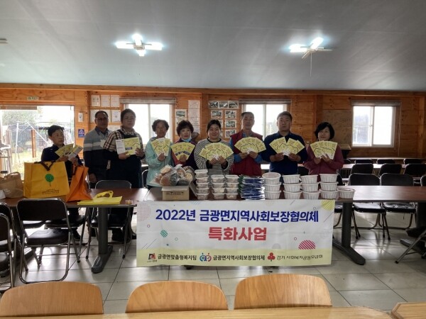 ‘행복나눔 반찬나눔’ 사업은 안성시 금광면지역사회보장협의체 특화사업으로 독거어르신 및 취약계층에게 매월 1회 반찬을 만들어 전달하고 생활상 어려움과 안부를 확인하며 돌봄 사각지대를 해소하는 활동이다.