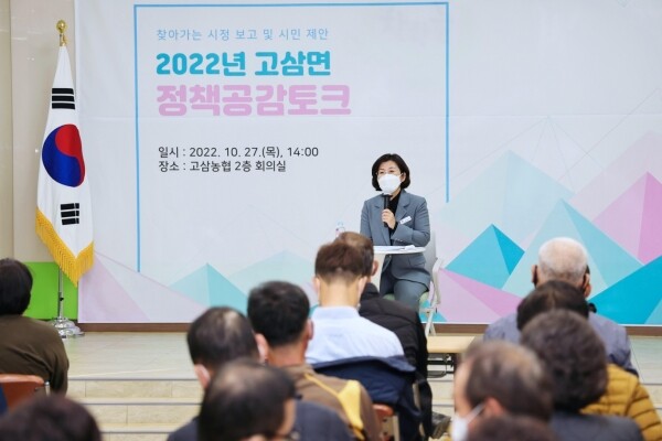 이날 김보라 안성시장은 “시정에 관심 가져주시고 오늘 행사에 참석해주신 주민 여러분들께 감사드린다”며 “오늘 제안해주신 다양한 의견들을 검토해 최대한 시정에 반영되도록 하고 더불어 사는 풍요로운 안성을 만들도록 지속적인 노력을 기울이겠다”고 말했다.