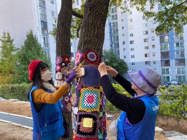 이번 활동은 경로당 어르신들과 자원봉사자들이 함께 나무를 뜨개옷으로 감싸 시각적인 아름다움과 더불어 병해충으로부터 나무를 보호하는 취지이다.