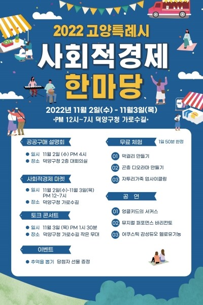 고양시 관계자는 “다양한 프로그램으로 구성된 2022 고양특례시 사회적경제 한마당 행사에 공공기관 구매담당자와 고양시민들의 많은 관심과 참여를 바란다”고 말했다.