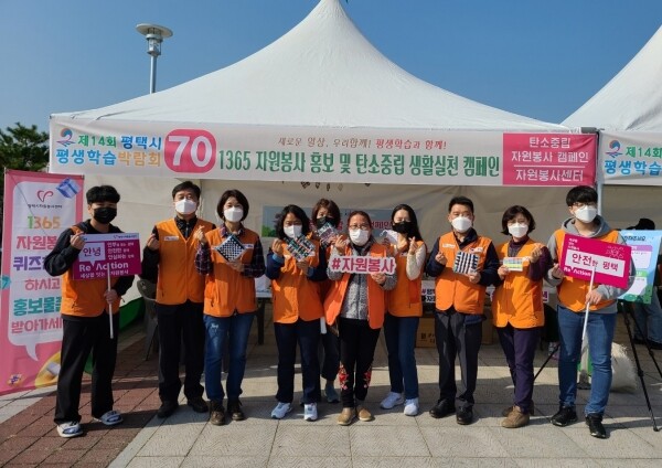 이날 캠페인은 이충레포츠공원 내 평택시평생학습박람회 행사장 홍보 부스에서 성인 자원봉사자 12명과 함께 진행됐다.