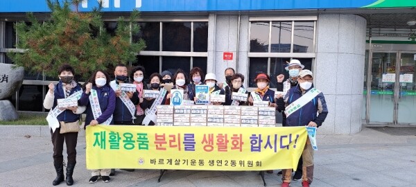 이영숙 위원장은 “코로나19 장기화로 포장과 배달이 늘어나면서 일회용품 사용이 증가하고 있어 재활용품 분리배출 활성화를 위한 캠페인을 진행하게 됐다”고 행사 취지를 밝혔다.