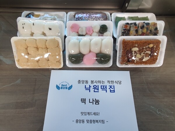 중앙동장은 “정기적인 음식 나눔으로 이웃 사랑을 표현해 주시는 임형두 대표님께 진심으로 감사드리고 후원해 주신 귀한 떡은 관심과 지원이 필요한 취약계층을 선정해 제공하겠다”고 전했다.