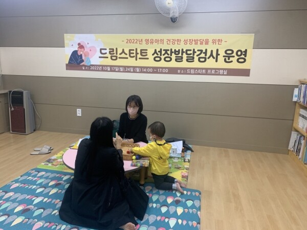 ‘드림스타트 성장발달검사’는 경인여대 간호학과 안지연 교수를 초빙해 개인-사회성 발달, 미세운동-적응발달, 언어발달, 운동발달 등 다양한 영역의 검사를 진행했고 검사 결과에 따라 사후관리가 진행될 예정이다.