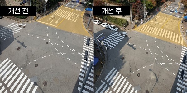 이에 구는 횡단보도를 교차로 방향으로 8m 가량 옮겨 보행자들이 안전하게 통행하도록 했다.