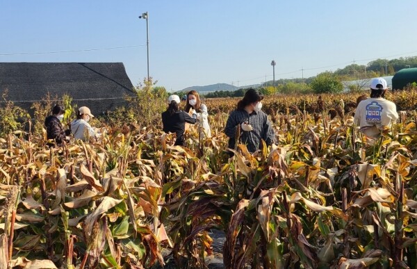 이날 봉사활동에는 재단 임직원 20여명이 참가했으며 마을주민과 함께 생강 캐기, 수수 수확, 고구마 캐기, 농가 주변 환경 개선 작업 등을 통해 농촌 인력난 해소에 기여했다.