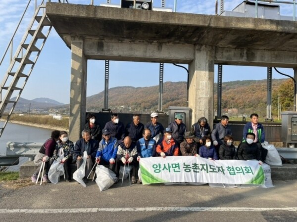 ▲ 양사면 농촌지도자회, 하천·하구 쓰레기 집중수거 활동 실시