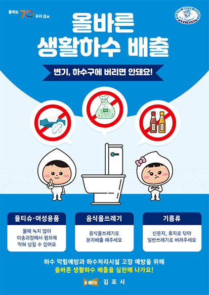 이에 김포시 맑은물사업소에서는 올바른 하수도 이용법을 담은 홍보물을 제작해 관내 공동주택을 중심으로 우선 배부하고 유관기관, 음식점, 숙박업소, 다중 이용시설 등에 배부하는 등 지속적으로 홍보활동을 할 계획이라고 전했다.