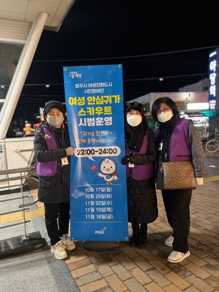 이번 시범 운영은 파주경찰서가 추천한 금촌로터리, 야당역 3번 출구, 문산터미널 일대의 야간 귀가 환경과 시민의 수요 등을 파악해 2023년 ‘여성 안심 귀가 스카우트’ 대상지를 선정하기 위해 기획됐다.