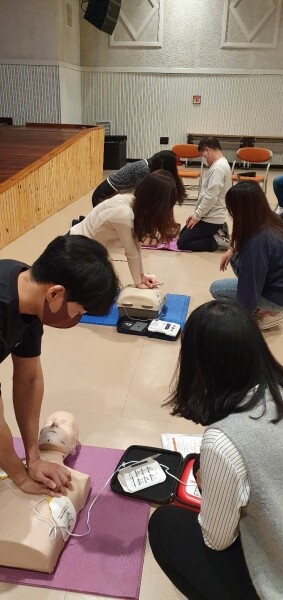 이번 교육을 통해 직원들은 올바른 심폐소생술을 배우고 자동제세동기의 사용 방법도 익혔다.