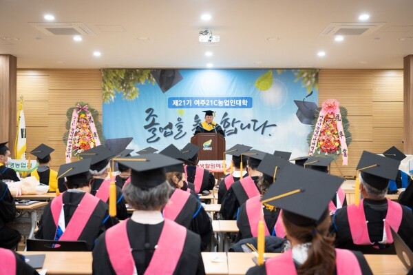 올해 여주21C농업인대학은 생명농업과, 생활원예과, 경영마케팅과 3개 과정으로 3월 15일 개강해 11월 3일까지 9개월간 전문 강사진으로 과정 별 특성에 따라 이론과 실습, 현장학습 교육을 추진했다 이날 졸업식에는 81명의 졸업생이 배출됐으며 생활원예과 김용숙 회장이 농촌진흥청장상을 수상하고 생명농업과 길귀남 회장, 경영마케팅과 최연옥 회장이 공로상을 받는 등 4개 분야 14명의 졸업생이 수상하는 영예를 안았다.