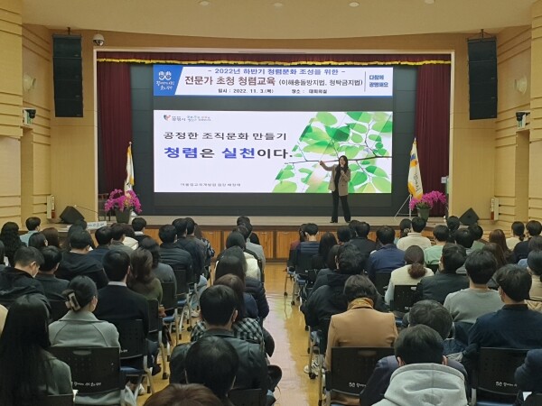 이번 교육은 국민권익위원회 청렴연수원 전문 강사를 초청해 ‘공정한 조직문화 만들기-청렴은 실천이다’를 주제로 진행됐다.