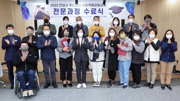 안성시에서는 먹거리에 관심이 있는 시민들을 대상으로 지난 8월부터 11월까지 총 8회에 걸쳐 푸드플랜 시민역량 강화교육을 운영했고 교육참여자 중 17명이 수료함에 따라 발표회 형식으로 수료식을 개최했다.