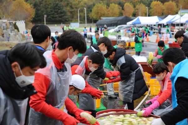 매년 이웃사랑 실천을 위해 새마을회에서 진행하는 사랑의 김장 담그기 행사는 올해 새마을협의회, 부녀회, 교통봉사대, 코오롱 봉사단 등 150여명이 함께했다.