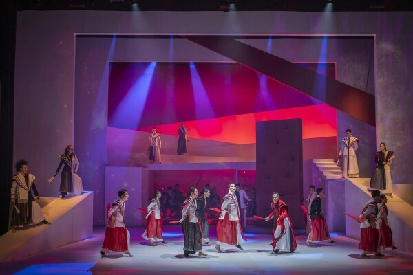 그림처럼 펼쳐지는 안무, 폭포처럼 쏟아지는 판소리 합창에 라이브 밴드의 연주가 더해져 놀라운 에너지를 뿜어낸다.