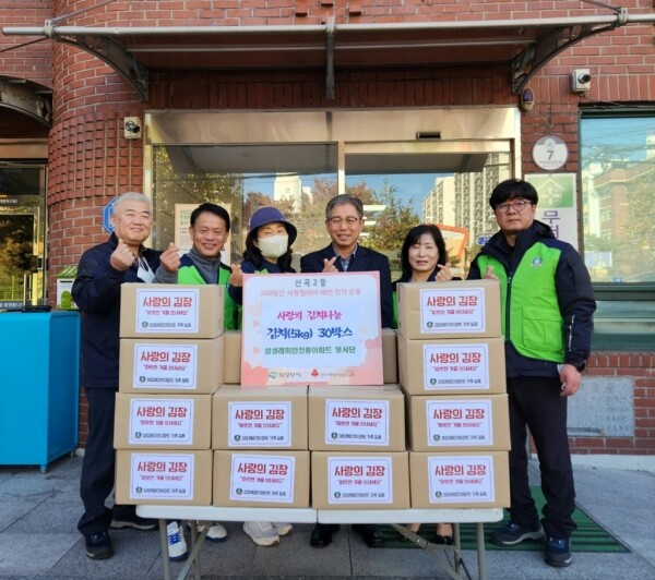 박성심 삼성래미안진흥아파트 봉사단장은 “정성껏 준비한 김장김치가 소외된 이웃에게 잘 전달되길 부탁드리며 100일간 사랑 릴레이에 많은 주민들이 참여해서 더 살기 좋은 신곡2동이 됐으면 좋겠다”고 말했다.