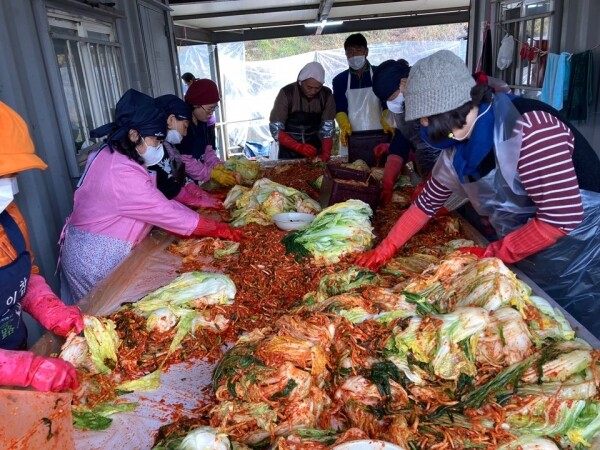 이날 행사에서 사용된 배추는 직접 재배한 배추로 정성껏 담아 포장을 마친 후 홀몸 어르신, 저소득 가구 등 소외계층 100가구에 전달했다.