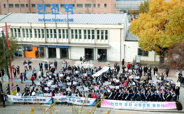 주민대표는 건의문을 통해 “인천역은 1899년부터 최초 철도의 시발지로 상징성이 매우 큰데 인구 감소와 경제 논리에 발목 잡혀 국가 균형 발전에서 매번 소외됐다”며 “철도 인프라 확보는 향후 낙후된 원도심 발전과 내항 재개발 사업에 시너지 작용을 해 지역 발전을 위해서도 꼭 필요하다”는 당위성을 피력했다.