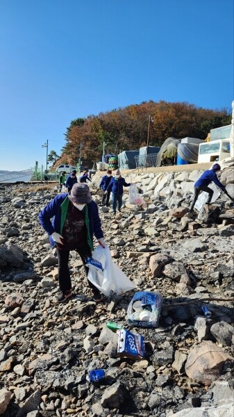 ▲ 교동면 새마을부녀회, 해안쓰레기 수거 총력