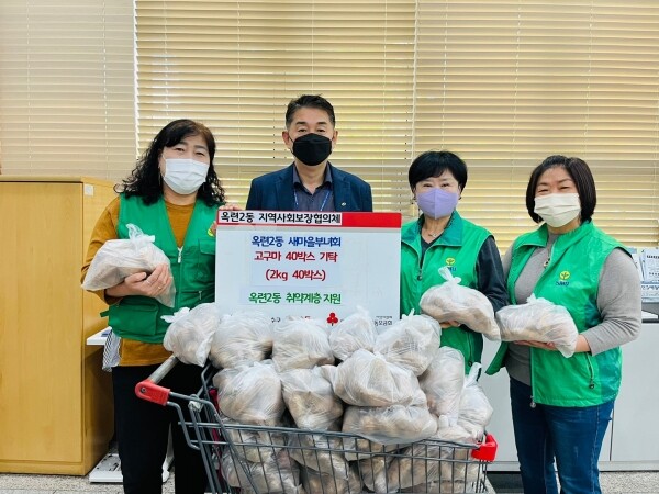 이날 겨울철이 다가오며 따뜻한 마음을 나누고자 마련한 고구마는 지역 내 한부모가정·차상위계층 등 이웃돕기 대상자 40세대에 건네지며 따뜻함을 더했다.