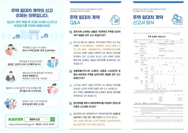 구청 관계자는 “덕양구청은 관내 행정복지센터 및 구청에 주택임대차 신고제에 대한 홍보물을 비치해 방문하는 민원인에게 배부하고 있다”며 “주택임대차 계약 신고제가 의무화됨에 따라 미신고 지연신고 등에 따른 시민 불이익이 최소화 될 수 있도록 지속적인 홍보 및 안내에 힘쓰겠다”고 말했다.