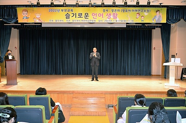 이번 교육은 동두천시 사회복지기금 지원사업으로 지난 10월 25일 어린이집 보육교사 교육에 이은 동두천시 어린이집연합회 주관 두 번째 교육이며 ‘슬기로운 언어생활’이라는 주제로 부모와 아이 사이의 행복한 소통을 위한 슬기로운 언어생활의 7가지 방법들을 제시해 참석 학부모들에게 좋은 호응을 얻었다.