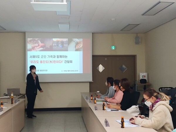 이번 간담회는 최근 연이은 북한 도발에 주민들의 불안이 계속되는 상황에서 군인 가족들도 옹진도민이라는 생각으로 군부대 관계자 및 가족들이 겪는 출산·보육·교육 문제, 의료·교통 등 건의사항을 청취하고 함께 상생 발전해 나갈 방안에 대해 소통하는 시간을 갖기 위해 마련됐다.