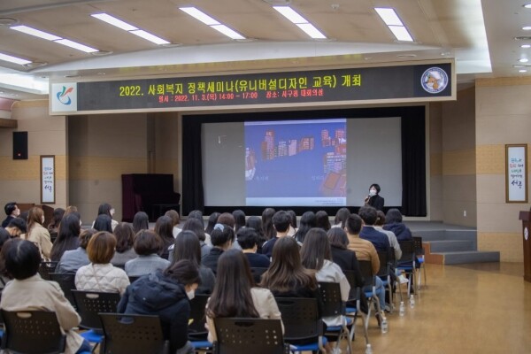 유니버설 디자인이란 특정 대상이 아닌 모두의 다양성을 포용하는 복지환경 디자인을 뜻하며 서구는 한국복지환경 디자인 연구소 전미자 이사장을 초빙해 유니버설 디자인의 이해와 적용사례를 주제로 회차별 3시간씩 세미나를 열었다.