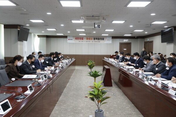 이날 정책협의회에는 정명근 화성시장을 비롯한 실·국·소장과 송선영 원내대표, 공영애, 김미영, 김상수, 임채덕, 정흥범, 조오순 국민의힘 화성시의원 6명이 참석해 지역 현안을 논의했다.