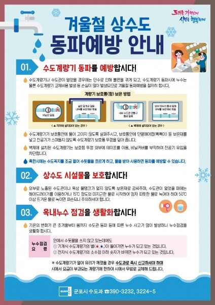 그럼에도 수도 계량기가 얼었을 때는 신속히 군포시 종합상황반으로 신고하면 된다.