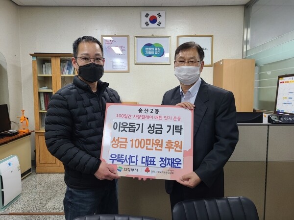 정재운 대표는 ‘사랑릴레이 배턴잇기 운동’ 기간마다 취약계층을 위해 100만원씩 기부하며 이웃사랑 실천에 앞장서고 있다.