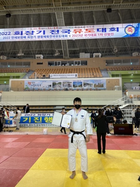 한재광 선수는 8강에서 김대현 선수를 안뒤축 기술로 절반, 누르기 기술로 절반을 획득하며 준결승에 올랐다.