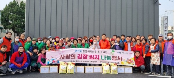 김정렬 관산동 새마을부녀회장은 “홀로 계신 어르신들이 사랑의 김장 김치로 이번 겨울도 따뜻하게 보냈으면 좋겠다”고 전했다.