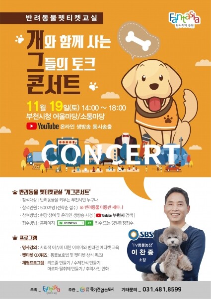 반려동물 문화행사는 반려동물을 키우고 있거나 관심 있는 부천시민 누구나 참여할 수 있으며 참여 희망자는 유기견없는도시 홈페이지에서 신청할 수 있다.