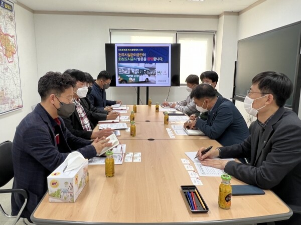 HU공사는 지난 10일 16대의 마을버스를 운영하는 전주시설관리공단 관계자들이 ‘화성시 공영버스제 운영 사업’ 벤치마킹을 위해 방문했으며 차량 배차 및 관리, 정비체계, 운전원 관리 등 화성시 버스 공영제의 성공적 운영에 대한 운영상황 파악과 노하우 습득, 질의응답 시간을 가지며 현장의 생생한 목소리를 담아갔다고 밝혔다.