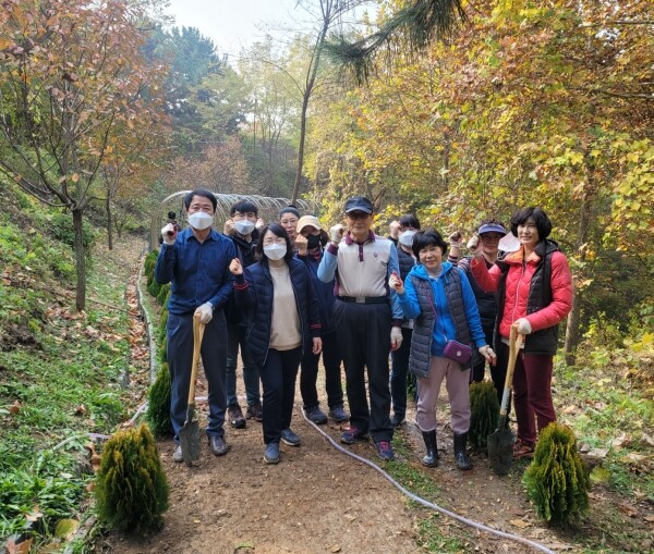 주안8동 통장자율회와 동 행정복지센터 직원 등 20여명이 참여해 승학산 산책로에 측백나무 60그루를 심었다.