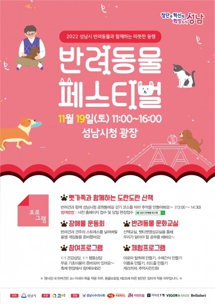 성남시는 반려동물을 키우는 국내 인구가 1500만명으로 추산되는 가운데 반려동물 등록제, 중앙·율동공원, 탄천 등 7곳에 반려동물 놀이터 운영, 길고양이 급식소 설치·운영 등 다양한 시책을 펴고 있다.