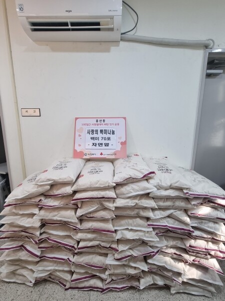 최광규 흥선동 복지지원과장은 “자연암의 지속적인 나눔에 감사드리며 기탁해 주신 백미와 함께 따뜻한 이웃사랑의 마음을 어려운 주민들에게 전해 드리겠다”고 밝혔다.
