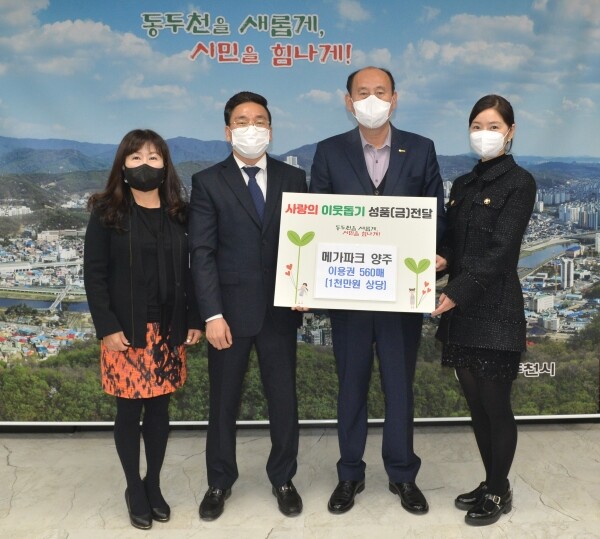 ㈜메가파크 이호선 대표이사는 “동두천시 아동들에게 다양한 테마시설이 있는 놀이공간을 부담 없이 즐길 수 있도록 시설 이용권을 기부하게 됐다”고 전했다.