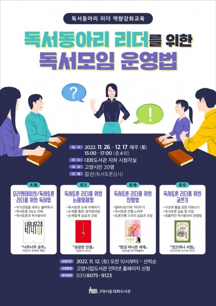 독서동아리를 하고 싶지만 어떻게 구성하고 이끌어 가야할지 몰라 고민하는 고양시민을 위해 마련됐다.