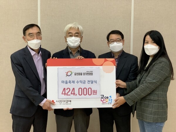 또 중산동 상가번영회와 강아지똥어린이도서관도 기부에 동참해 마을축제 수익금 424,000원과 186,390원을 각각 지역사회보장협의체에 기탁했다.