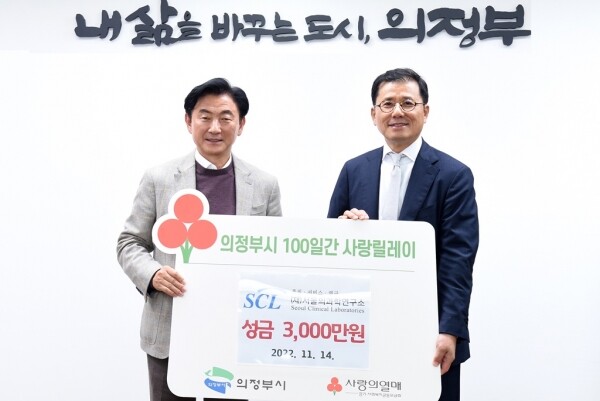 김동근 의정부시장은 “코로나19 상황의 지속으로 경제적인 어려움을 겪는 취약계층이 많다”며 “재단법인 서울의과학연구소의 100일간 사랑릴레이 참여로 의정부시의 많은 이웃들이 따뜻한 겨울을 맞이할 수 있을 것 같다”고 답했다.